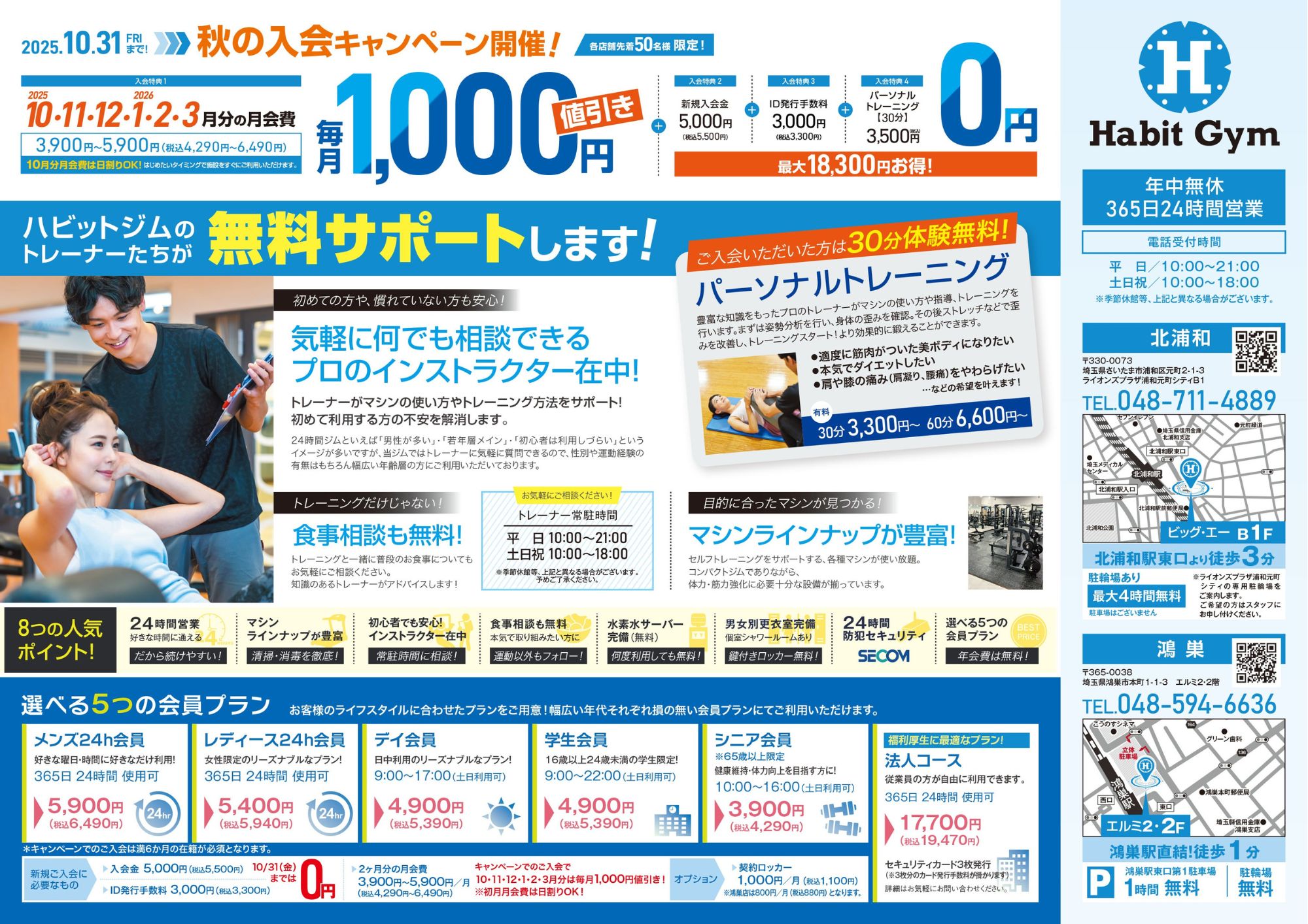 【入会特典①】 10・11・12・1・2・3月の半年間を毎月 ⇒ 1,000円値引き!!